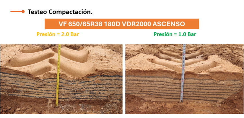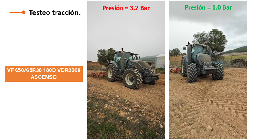 Esta presión no es adecuada para la labor actual con el cultivador, lo que demuestra que cada aplicación requiere elegir la presión correcta para optimizar tracción, eficiencia y proteger el terreno.